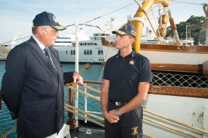 S.A.R. il Principe Carlo di Borbone delle Due Sicilie, Duca di Castro, Capo della Real Casa e Gran Maestro dell’ Ordine Costantiniano, S.A.R. la Principessa Maria Carolina di Borbone delle Due Sicilie, Duchessa di Palermo e S.A.R. la Principessa Maria Chiara di Borbone delle Due Sicilie, Duchessa di Capri, in visita sulla Nave Palinuro del Comandante Belfiore.